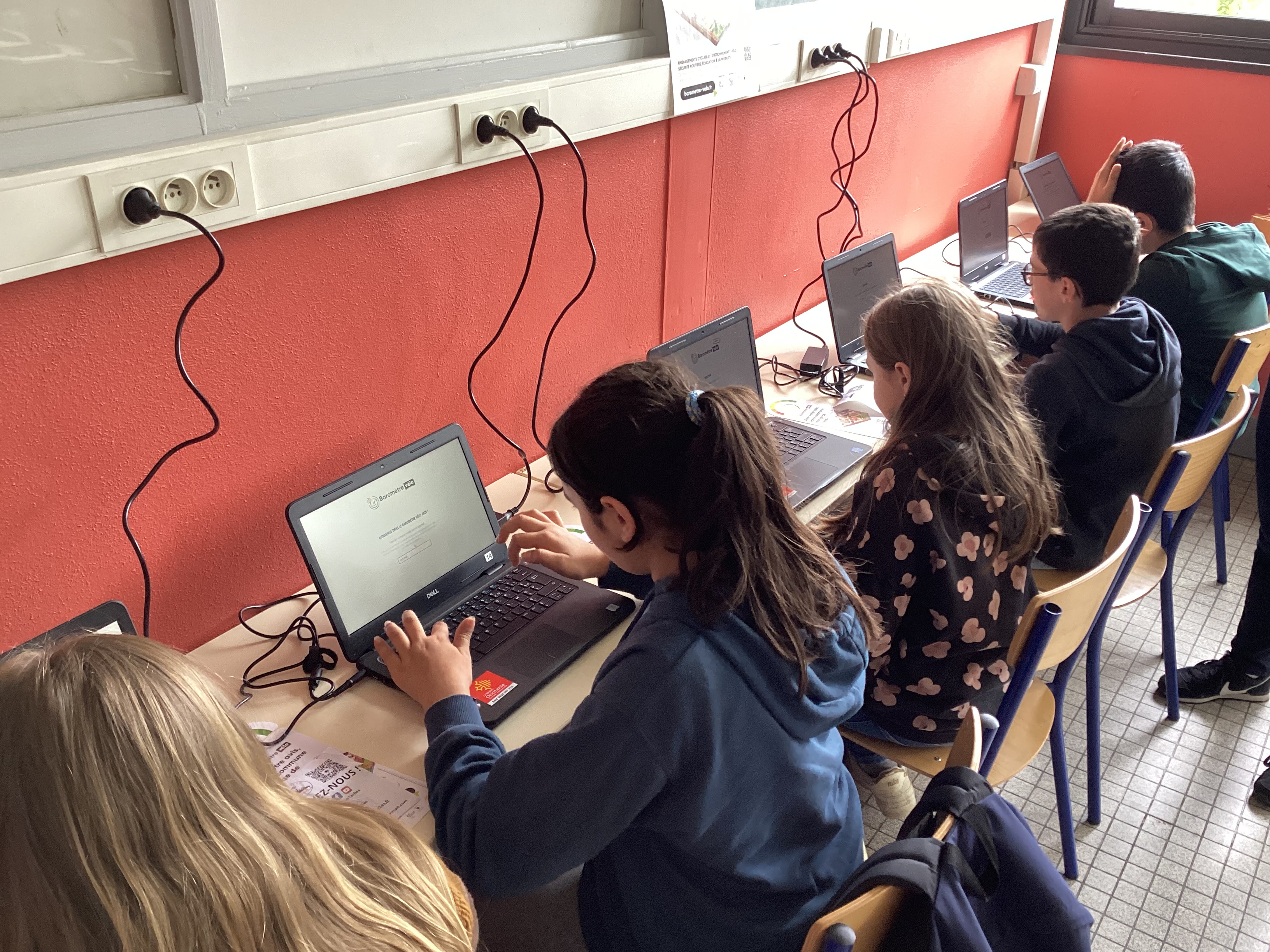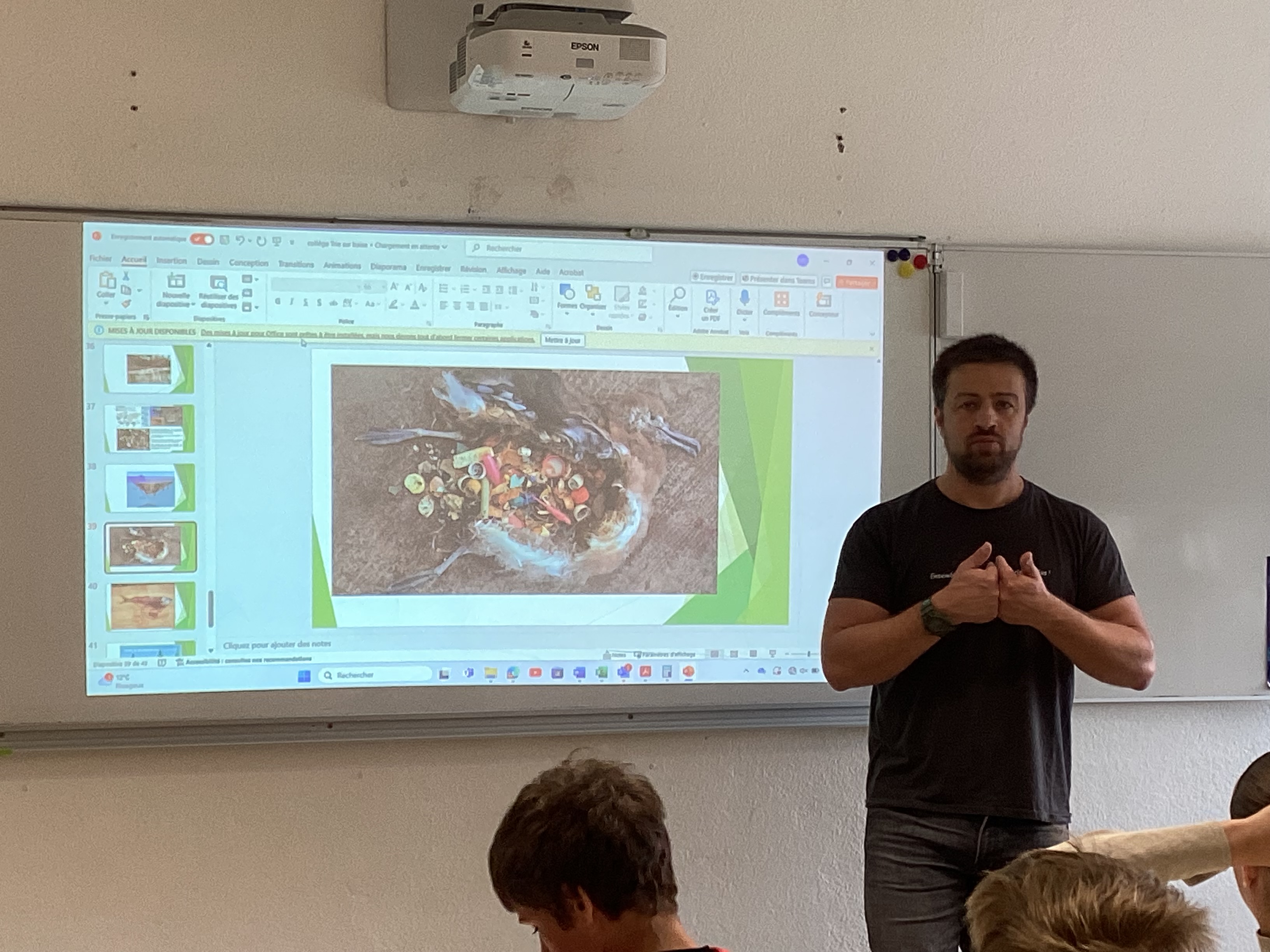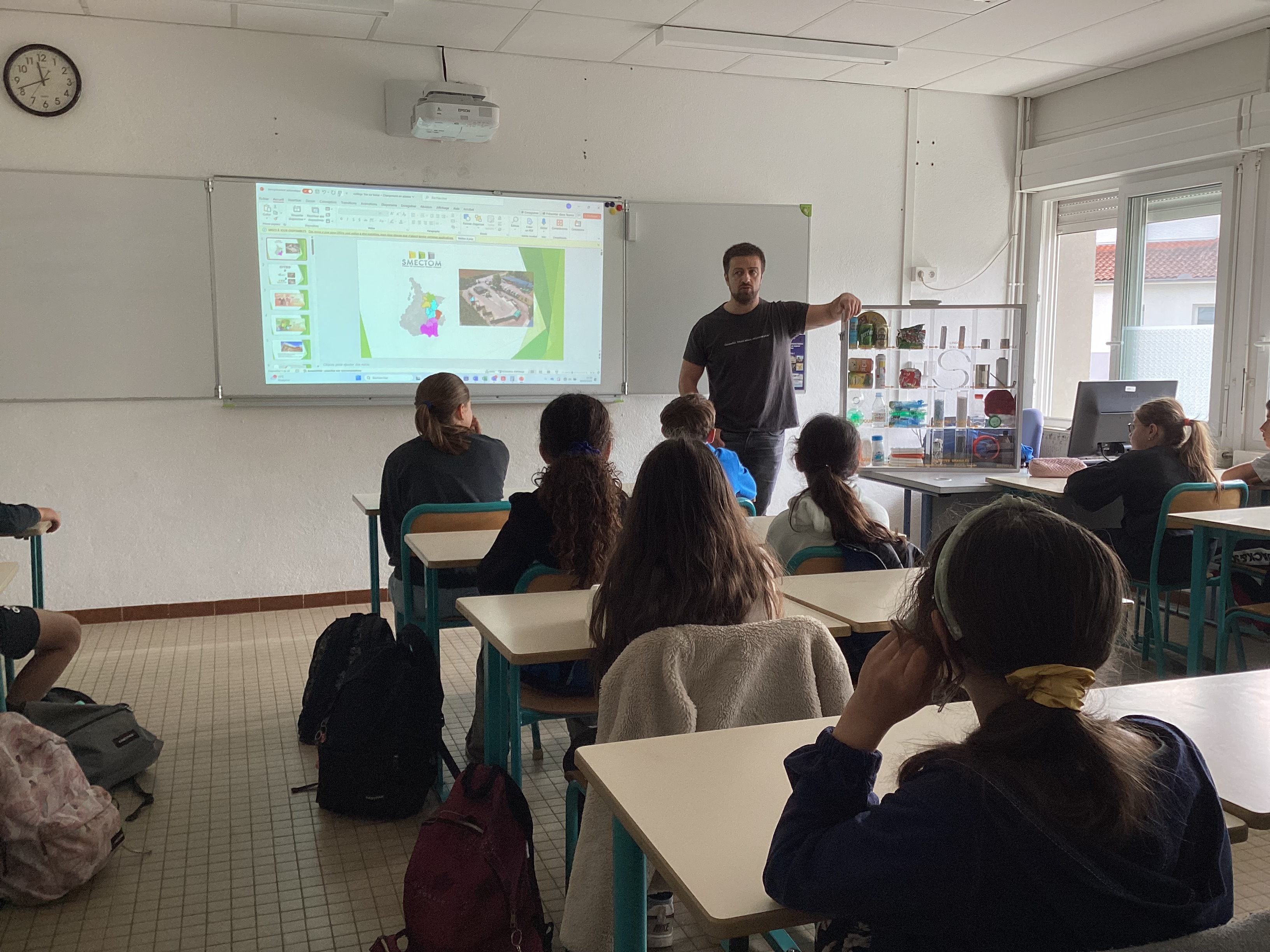 Sensibilisation au tri avec un intervenant du SMECTOM, Marc Dollo auprès de toutes les classes de 6e , du club marche et des éco-délégué.es